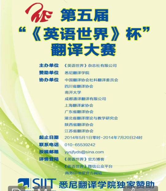 2014年第五届“《英语世界》杯”翻译大赛启事
