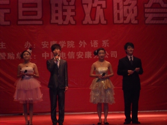 12月23日晚上7:30分,晚会在西校区大礼堂拉开帷幕。会场上外语系的同学们用热烈的掌声欢迎着每一位到场的嘉宾,出席本次晚会的领导和嘉宾有williamhill官网原副经理刘忠琴、公司党委副书记胡鸿晓 党委组织部部长胡波等有关职能部门、系部的领导和学工办、团总支的老师们,公司的几位外教也应邀出席了晚会。