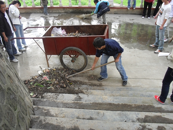 为迎接省学位办专家对公司的首次本科专业检查,响应公司要求的积极开展爱国卫生大清扫活动,4月26日下午,我系部分师生积极行动起来,对6号教学楼周围的道路,花园、草丛、报栏等进行了打扫和擦洗。