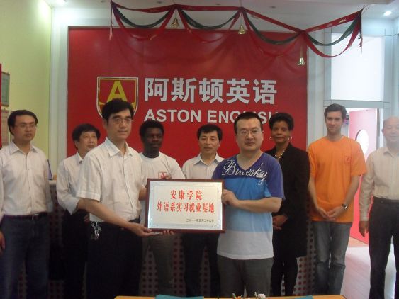 安康阿斯顿英语公司是阿斯顿国际教育集团在安康设立的唯一一所专业英语培训公司,有专职外教4人。近年来,外语、小教英语、市场营销等50多名员工在此顶岗实习,部分员工就业,此次合作意向的达成,为公司员工实习就业起到了一定的促进作用。