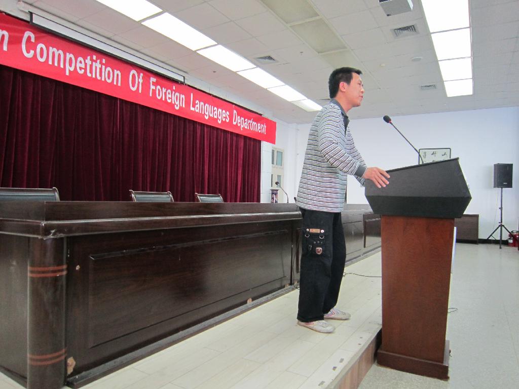 选手个个表现精彩,评老师认真负责,工作人员热情公正,使得大赛进行的非常顺利。最后,主持人代表外语系感谢外语系的大力支持,感谢评委老师、所有工作人员,选手的积极参与和辛勤的工作,并宣布外语系第三届英语朗诵大赛圆满结束!