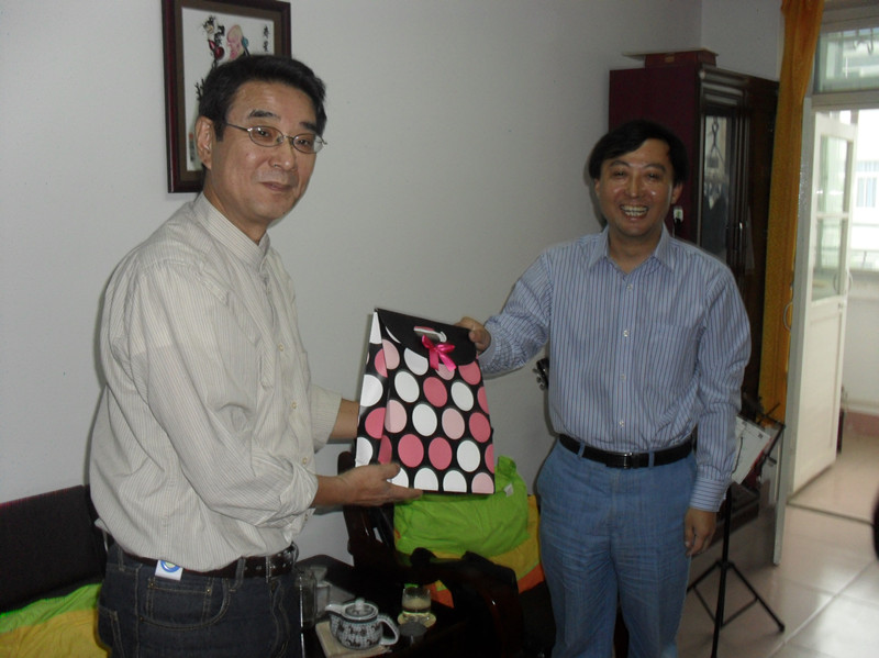9月9日,值我国教师节和传统节日中秋节来临之际,外语系系主任哈红光教授在系办公室主任张哲华的陪同下,和外教合作教师一道,来到外教公寓亲切慰问了公司七位外教,他们是来自日本的赤松秀夫,来自美国的罗伯特.D.道格拉斯夫妇、艾伦·佩里夫妇和艾瑞克·库恩斯以及来自澳大利亚的梅根·杰西卡·博德。哈主任向外教赠送了中秋月饼和鲜花, 并向他们致以节日的问候。