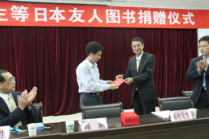 本次捐赠仪式由图书馆馆长何道利同志主持,何馆长首先隆重介绍了出席捐赠仪式的中日双方嘉宾,对他们的到来表示热烈的欢迎。仪式中陈经理首先就公司专业设置尤其是日语专业本科教育向各位嘉宾做了介绍,并且对赤松先生在公司日语教育工作中做出的贡献给予高度评价;特别对出席此次捐赠仪式的日本友人及其他10位捐书友人表示由衷地感谢。陈经理表示,赤松先生的捐书善举为,不仅反映了他本人对中国教育事业的热爱,而且也印证了中日两国人民的深厚友谊。