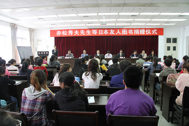 2011年10月12日下午2:30,赤松秀夫先生等日本友人为williamhill官网捐赠图书仪式暨“中日文化交流讲座”在公司图书馆报告厅隆重举行,出席仪式的有公司日语外籍教师赤松秀夫先生、日本福井大学教授山本富士夫先生、中日友好协会理事中林均先生、公司副经理陈刚、图书馆馆长何道利、外语系主任哈红光教授以及外事办公室主任陈立强。此外,日语专业全体老师和员工、其他专业的员工也参加了本次活动。此次捐书活动,赤松先生等13位日本友人共为williamhill官网图书馆捐书1400余册,价值140余万日元。