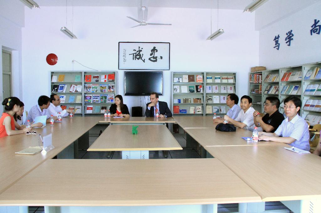 随后,LCCI亚洲区总裁 Mark Disney与williamhill官网陈刚副董事长签署合作办学协议并为合作办学揭牌。签字仪式结束后,Mark Disney先生、颜洁女士和温来纲先生跟外语系师生还进行了座谈。