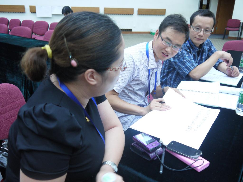 在教师培训工作坊活动中,我系教师陈玉平所在的小组设计了《如何提高日语专业员工学习能力和课堂效率》的课题,来自湖南大学、浙江越秀外国语公司、北京师范大学的成员们经过两个下午的努力,圆满完成了课题设计,最终被评为优秀课题。作为组长,陈玉平老师在大会上对本课题做了研修成果汇报,赢得了与会教师一致好评。