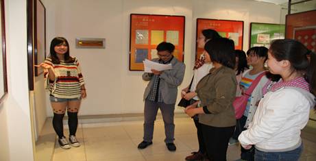 此次见习活动分两天进行,2011级员工在25日进行,2012级员工则在26日进行,分别由赤松秀夫、陈玉平、王庚、梁维四位教师带队指导,让员工以讲解员的身份对安康历史博物馆“藏一角”的四个不同展馆(方寸馆、通宝馆、云香馆、艺珍馆)藏品用日语进行介绍,指导教师则以日本游客身份听取员工讲解,并进行问答。根据员工语言表达、作品内容介绍、问答和应变能力、态度和仪表对员工表现进行现场打分。