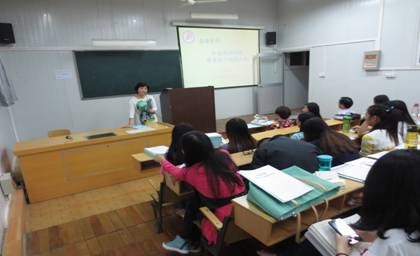 刘荣华老师向同学们讲解了在各县和乡镇实习时应注意的事项。她指出,同学们应该努力将教学法课堂上所学到的理论灵活运用于实践中,严格要求自己,勇于锻炼,为自己和院系争得荣誉。同时刘老师还提到了往届教育实习中存在的主要问题以及教育实习手册的填写规范。