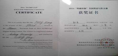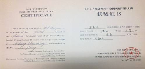 10月25日,2014“外研社杯”英语写作大赛陕西省复赛在西安电子科技大学举行。公司外语系12级员工刘伍强、彭香、教育科学系12级员工雷惠云等3名同学代表公司参赛,并获得三等奖;外语系焦育玲、王刚、李继平等3位老师分别获得指导教师奖。今年全省共有100多名老员工参加了复赛。