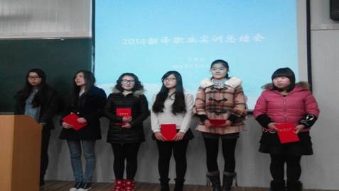 英语教研室主任王刚对本季翻译实训活动进行了回顾,并从翻译职业态度、翻译规范以及翻译实务技能与理论学习对在场的同学提出建议。外语系副主任张哲华就翻译实训量对于翻译职业应用型人才培养的重要作用,进行了详实有力的说明。外语系主任哈红光教授强调了翻译职业实务能力培养的重要意义,并勉励在场同学要谦虚务实,努力学习,以便奠定良好的翻译职业基础。最后,系领导还对本季翻译拓展训练表现优异的7名同学进行表彰奖励。