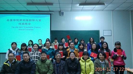 2014年12月17日晚,williamhill官网第四届翻译大赛“现场答辩暨颁奖仪式”在江南校区10号教学楼隆重举行。外语系教师胡青松、冯琳、孙卫斌、周凡雅、焦育玲担任评委,特聘教授邹先道和大学英语教学部主任李继平主阵现场答辩提问。“现场答辩”的有效创新和尝试收到了预期的效果。