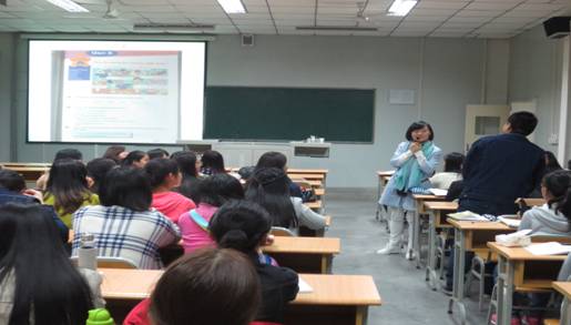 胡镕老师首先对初中英语课程总体目标进行了介绍,使同学们对当前初中英语教学“教会员工什么”这个问题有了总体把握。然后,在谈到具体的教学工作时,胡老师分享了自己在课堂教学方面的诸多经验,对新课程标准下的初中英语公司产品工作提出了很多有见地的建议。她说,真正的英语教学应该是“解放老师,让员工动起来。”同时,胡老师还使用案例讨论的方式与同学们一起分析了听力、口语、阅读、写作等不同课型的教学方法。最后,胡老师对备课和说课等重要的英语教师职业技能进行了讲解。