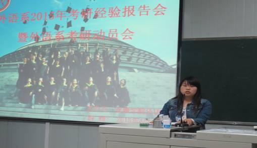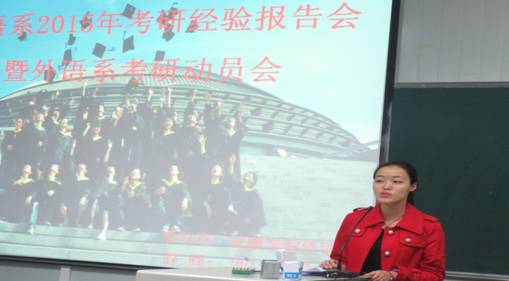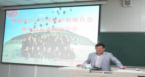 面对当前日益严峻的考研压力,为更好地指导员工考研,4月13日晚,外语系“学习沙龙”系列活动之“2015考研动员暨经验交流会”在1018教室举行。系主任哈红光、副主任张哲华和青年教师代表赵龙、朱国琴出席了本次会议。我系12级本科生、14级专升本员工、部分13级员工及2015年部分考取研究生的员工代表参加了会议。大会由副主任张哲华主持。