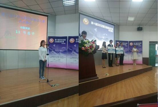 经过前期多场预赛3000余名选手的淘汰筛选后,西安外国语大学、西安交通大学、西安电子科技大学、陕西师范大学、西安翻译公司、西安外事公司、兰州大学、西北师范大学、宁夏大学、青海师范大学、新疆师范大学等21所高校的21名选手参加了西北赛区“争霸战”。 比赛分为命题演讲和即兴演讲两部分,对选手们的语言水平、知识储备、反应能力等方面进行综合考察。在此次比赛中,公司外语系日语专业三年级毛怡姗同学表现良好,尤其在即兴演讲发挥出色,得到评委们的认同,最后以总排名第9的成绩获得优秀奖。
