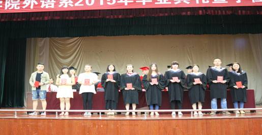毕业典礼由系副主任张哲华主持。伴随着激昂雄壮的国歌声,外语系2015年毕业典礼正式拉开帷幕。首先,系党总支李延福书记宣读了优秀毕业生的决定。出席典礼的校系领导为优秀毕业生颁发了荣誉证书。