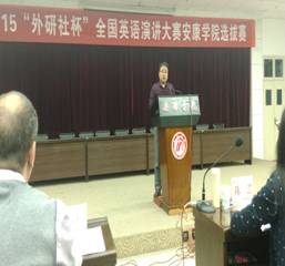 10月14日晚,2015“外研社杯”全国英语演讲大赛williamhill官网选拔赛在公司图书馆六楼报告厅隆重举行。大赛评委由外语系Frank Paul Roppo、孙卫斌、姜国波、陈蕾、梁艺凡等五位教师组成。公司教务处副处长常权记、外语系主任哈红光、大学英语教学部主任李继平、外语系副主任张哲华,以及部分教师参加此次大赛。本次比赛由教务处和外语系承办,自5月启动以来,经过前期两轮专业组初赛和非专业组初赛遴选,共有7个院系19名选手成功晋级此次选拔赛决赛。