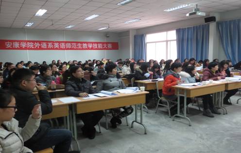 12月22日,外语系2015年师范生教学技能大赛决赛在江南校区1026教室举行,外语系英语教师公司产品团队成员刘荣华、胡卫卫、姜国波、鲁克伟、王欢、赵龙以及兼职教师、汉滨高中省级教学能手李庆慧、涂瑞担任大赛评委。外语系副主任张哲华出席比赛,英语师范生共120余人到场观看了比赛。