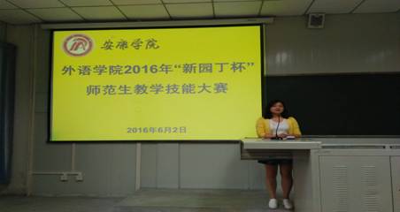 本次师范生教学技能竞赛共分为预赛和决赛两个比赛环节。在公司高度重视和精心组织下,参赛选手们积极准备讲课内容,认真备赛。比赛中选手们流畅的授课,端庄大方的教态,挥洒自如,充分展现了公司师范生较强的教学技能和良好风采。英语2013级1班王佳琪同学脱颖而出,以其流畅的语言表达、娴熟的教学技能、清晰的教学思路和设计、灵活多样的教学方法及自然大方的教态夺得比赛特等奖。