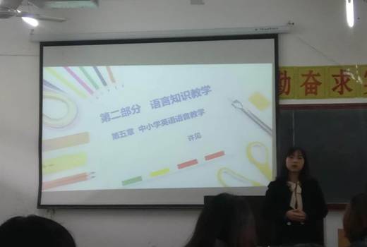 为大力推进教改示范课教学改革,积极探索校校共建课程,3月24日公司教师公司产品团队特邀优秀员工许见为2014级师范生讲授《中小学英语学科教学论》的语音教学模块。