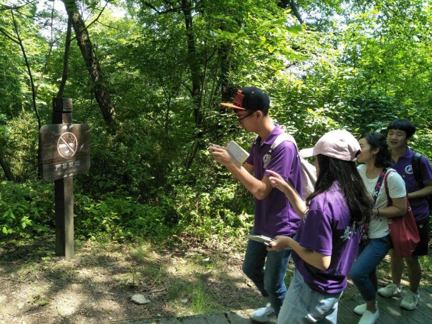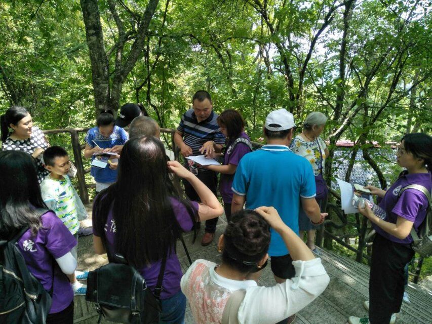 上午7点整,十三名实践员工在辅导员老师常远红、专业指导老师邓雪玲的带领下准时从公司出发前往南宫山实践点。到达岚皋县南宫山大酒店后,实践团队与支持本次活动的南宫山景区负责人李宁会面。随后,李宁带领实践团队前往南宫山景区,在南宫山景区门前,李宁首先介绍了本次活动的路线及安全注意事项:本次活动从北大门出发,途径二郎坪、千步阶梯、观音望海、玻璃栈道、真身殿及飞拉达攀岩等景点,李宁强调小环线路线路途陡峭,希望实践对员们注意自身安全,服从带队老师安排。随后,实践队员们开始了本次的实践活动。队员们沿着景区路线,积极收集公示语标识牌及英译的第一手资料,负责人李宁也积极的为实践队员们讲解各个景点的历史背景,同学们虚心求教,不懂就问,为接下来的英译工作做准备。队员们也对景区游客及景区工作人员进行公示语英译语言规范性的问卷调查,当地游客对本次的社会实践活动非常支持,积极配合问卷调查。队员们还收集了游客对标识语英译的准确性和规范性的意见和建议。