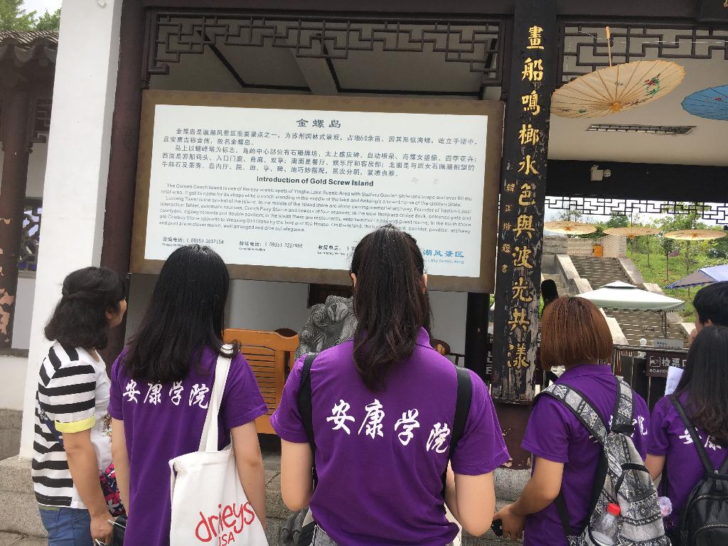 上午8点整,实践团在辅导员老师常远红、杨厚东及专业指导老师邓雪玲的带领下准时从公司出发前往瀛湖实践点。到达瀛湖实践点后,实践团队与支持本次活动的瀛湖景区负责人胡甲文会面,由他协助实践团完成本次的调研活动。沿着景区的主干线,实践成员们边收集公示语标牌及其英译的第一手语料,边主动与老师讨论分析其英译的规范性。队员们还对景区游客及景区工作人员进行了公示语英译语言规范性的问卷调查,游客们对本次的社会实践活动非常支持,积极配合问卷调查并提出对景区标识语的意见和建议。景区负责人胡甲文积极为实践队员们讲解各个景点的历史文化背景,实践队员们不懂就问,积极做笔记,为后续的翻译工作提供依据。完成整个景区的实地调研工作后,实践团对瀛湖景区总经理秘书王女士、规划部长康先生及景区管理人员梁总进行了采访。他们表示瀛湖景区对此次威廉希尔中国官网的实践活动非常支持,瀛湖景区目前正处于申报国家AAAAA级景区、标准化建设阶段,此次威廉希尔中国官网的实践活动为他们实现近期目标提供了充足的支撑材料。他们还表示,瀛湖景区正逐步走向国际化标准,需要大量的外语翻译人员,愿意提供岗位给威廉希尔中国官网员工,希望能和威廉希尔中国官网在标准化建设阶段紧密合作,实现共赢。