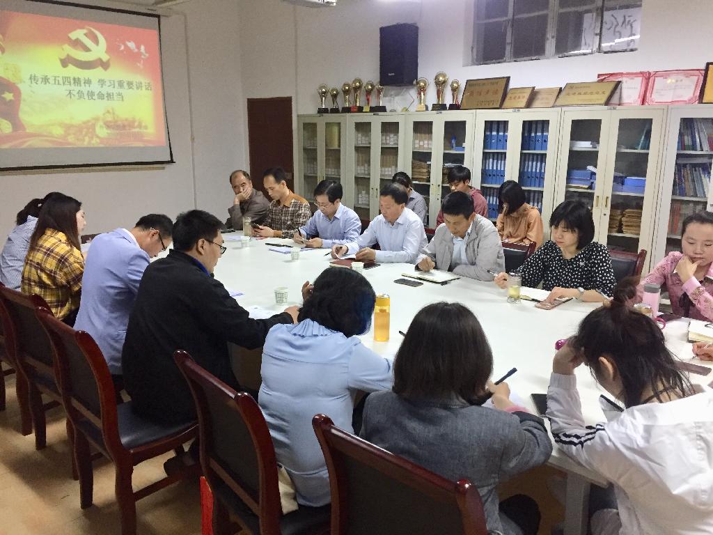 本次活动从观看习近平总书记在纪念五四运动100周年大会上的重要讲话拉开帷幕。观影结束后,公司党总支书记郭家平、副经理张哲华、副经理胡卫卫就如何帮助青年教师提高政治素质和业务水平,如何真正做青年教师的引路人,如何教育青年员工更好的成长成才分别作了发言。