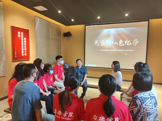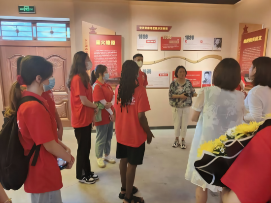 从史料陈列室到初心感悟室,队员们集体观看“芭蕉口事件”和党史专题片《芭蕉口红色纪事——中共安康地委机关转移前后及胡琛烈士的故事》,学习红色故事和革命精神,铭记英雄事迹、继承革命遗志。随后,胡经理和周老师与全体成员对芭蕉口遗址的公示语英译进行了现场的调研与分析,加强了成员们对公示语英译理论的理解。深入调研公示语的英译准则,对国际交流与合作有重要意义,将红色文化准确全面的展示给世界。