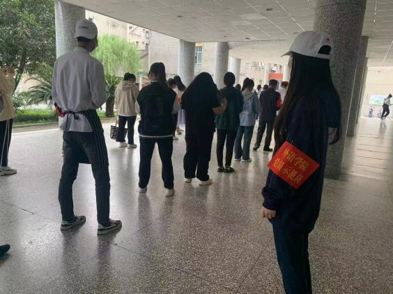 在疫情防控工作现场,威廉希尔中国官网员工党支部书记李梦带领四名员工党员于9月25日上午,在江南校区1号楼大厅开展核酸检测点执勤志愿服务工作,协助维持现场秩序,确保检测工作高效运行,展现了党员应有的担当和的良好形象。