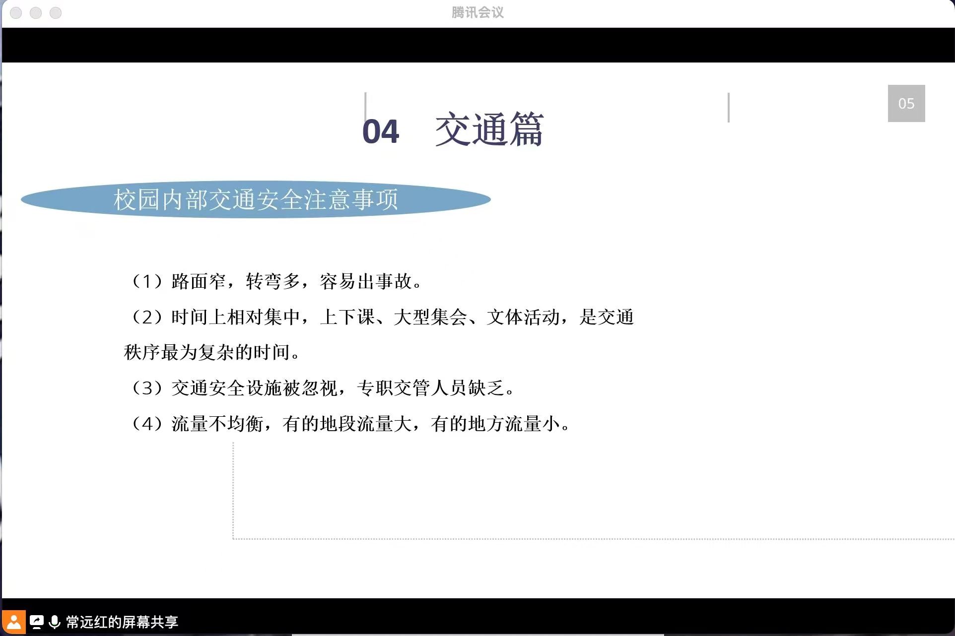 首先,常老师讲了防盗篇,用身边的案例告诉同学们防盗的重要性并向同学们介绍了防盗的基本方法,增强了同学们在日常生活的防范意识。其次,常老师讲了消防篇,向同学们分享了真实案例,并介绍容易起火的几种方式、预防措施及发生火灾时的报警电话。着重讲了如何预防宿舍火灾以及宿舍火灾隐患。接着,常老师展开了交通篇,讲了校园内部交通安全注意事项以及作为老员工应注意的问题,用2010年全国道路交通事故这一血淋淋的事例告诉同学们交通安全的重要性,并向同学们科普了交通安全常识。其后,是防诈骗篇,常老师先给同学们播放了经历过电信诈骗的徐玉玉真实案例的视频,让同学们重视电信诈骗发生的严重后果,然后给同学们教避免上当受骗方法,提高同学们的警惕性。然后,是生活安全篇,常老师向同学们讲了日常生活中可能发生的不安全事故,并告诉同学们遇到了不安全事故的应对措施,便于更好的预防不安全事故的发生。最后,常老师提醒同学们虽然疫情已经过去,但个人防护还是不能掉以轻心,在日常生活中尽量戴口罩,勤洗手,注意个人卫生和防护。