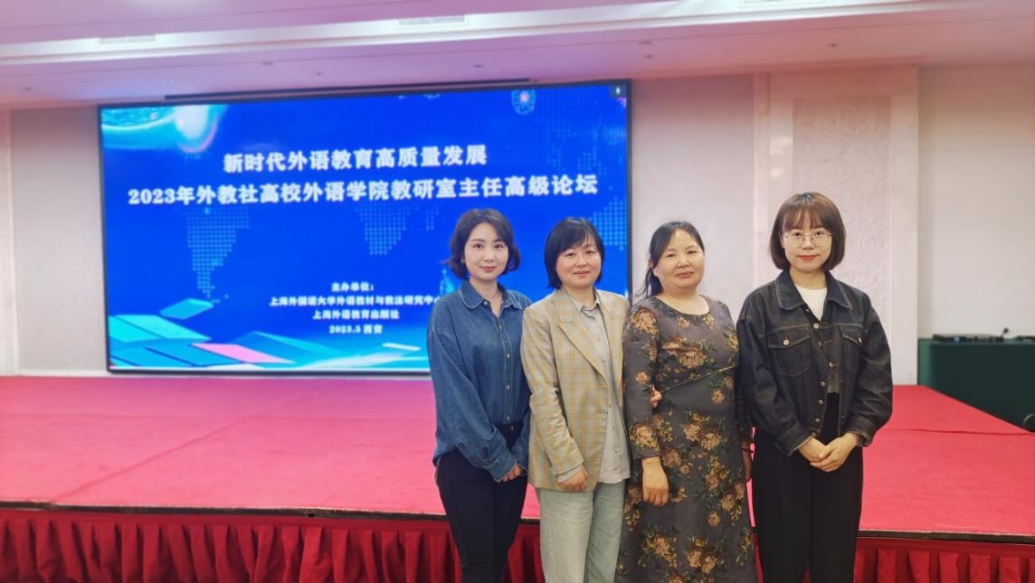 5月12日至5月14日,由上海外国语大学外语教材与教法研究中心、上海外语教育出版社共同主办的“2023年外教社高校威廉希尔中国官网教研室主任高级论坛”在西安市举行。威廉希尔中国官网大学英语教研室主任钱莉、副教授陈小红、青年骨干教师袁昌丽、徐雯应邀参加了会议。会议由上海外语教育出版社西北区负责人王政先生主持。