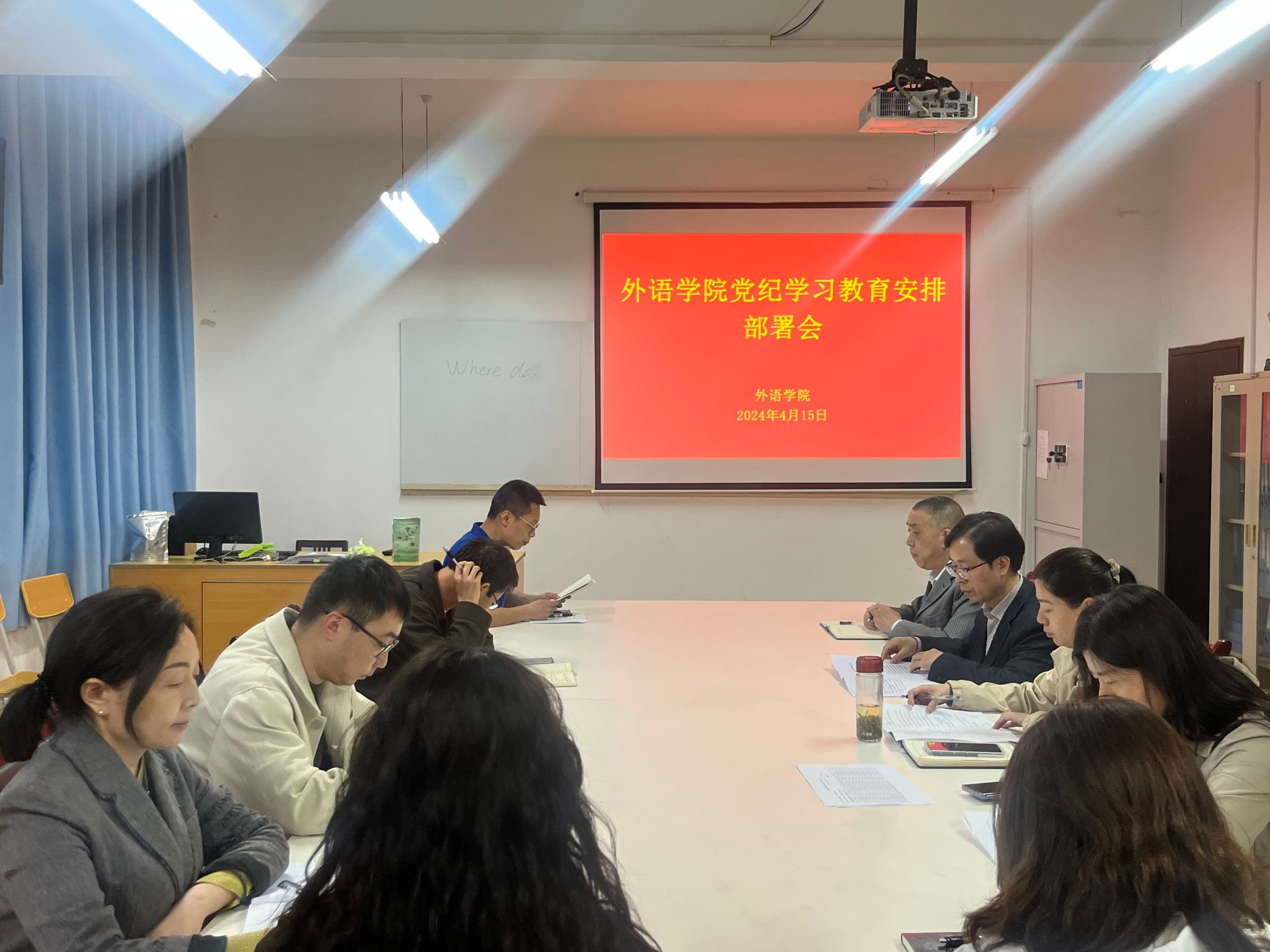 4月15日下午,威廉希尔中国官网在6109室召开党总支委员(扩大)会议,安排落实《中共williamhill官网委员会关于在全校开展党纪学习教育的工作方案》相关工作,党总支委员会委员,各支部书记、支部委员等参加了会议。党总支书记肖红香主持会议并提出工作要求。