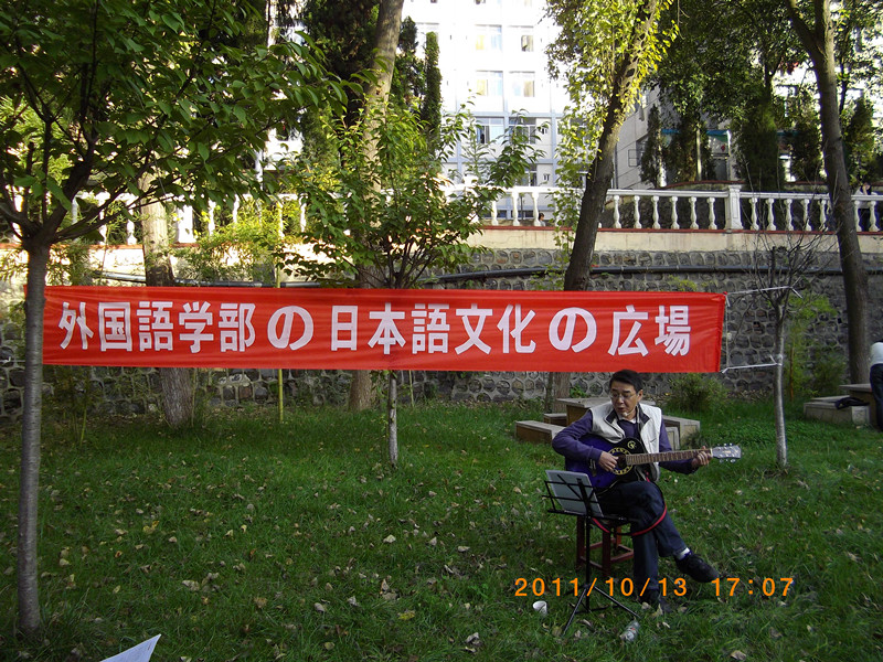 2011年10月13日下午4:30,外语系日语专业第二届“日语文化广场”活动在六号教学楼后花园举行。在系领导的关心支持下,在日语专业师生的积极准备和参与下,获得圆满成功。