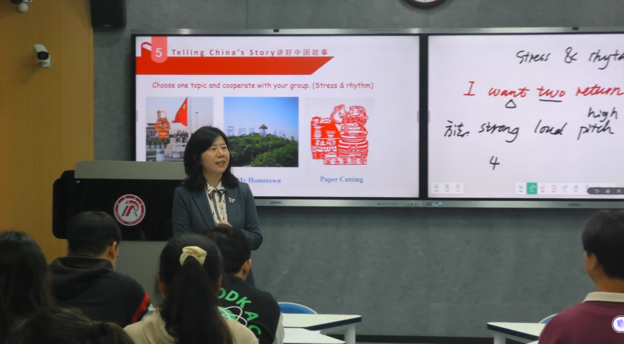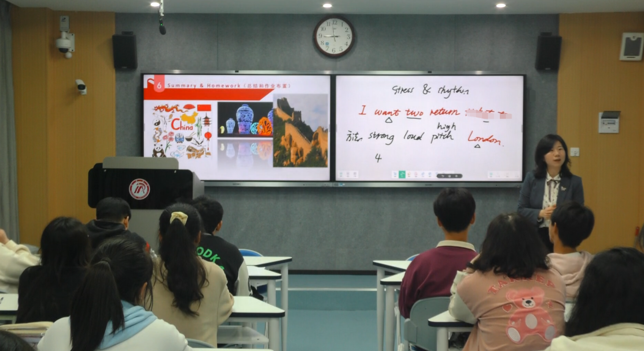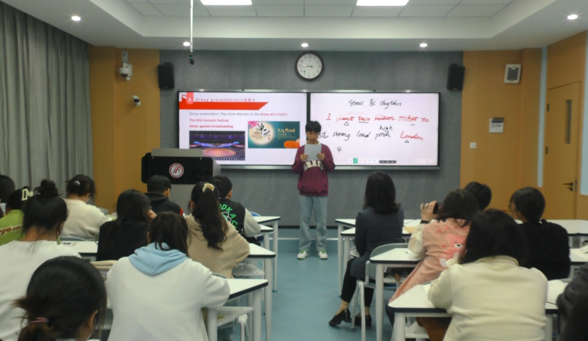 课堂气氛轻松活跃,讨论热烈。员工不仅对视频中重读、语调进行了案例分析,并积极模仿训练标准的语调和重读技巧。在讨论环节,学员们表示,承担培育新一代青少年,不仅要做好专业知识教学,更要结合英语专业特色实现育人目标。
