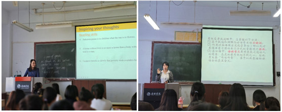 为进一步提升大学英语课堂教学质量,鼓励大学英语教师积极探索并不断创新教学方法,近日大学英语教研室开展了大学英语课堂教学观摩研讨活动,大学英语骨干教师朱蕾和桂红梅分别呈现了大学英语读写课和听说课。威廉希尔中国官网副经理刘子富、教学督导李继平、刘燕、大学英语教研室无课老师参加了此次观摩研讨活动。