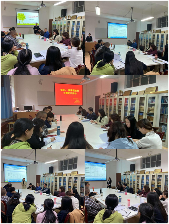 活动中,英语系、商务英语系代表教师分享了课程大纲攥写心得,就大纲的编制规范与要求、难点问题展开讨论交流。大家表示,以党建促课程建设的发展,也是教研室工作的有效创新,必将促进专业更好更快的发展。