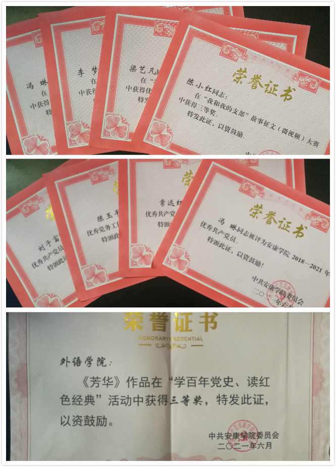 此外,在公司“辉煌百年·七个一”系列活动中,公司获得“党建知识竞赛优秀组织奖”、“‘我和我的支部’故事征文(微视频)大赛优秀组织奖”;在“学百年党史、读红色经典活动中,威廉希尔中国官网参赛作品《芳华》获得比赛三等奖”;在“williamhill官网‘我和我的支部’故事征文(微视频)大赛中,教工二党支部陈小红同志的作品《我和我的支部》(微视频)获得三等奖”,教工一党支部冯琳、教工二党支部梁艺凡、员工党支部李梦等3名同志的作品分获优秀奖。