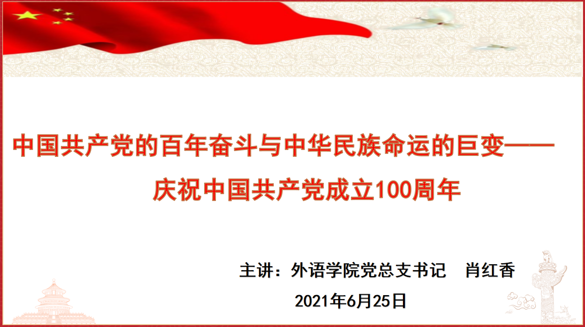 会后,党总支书记肖红香以“中国共产党的百年奋斗与中华民族命运的巨变——庆祝中国共产党成立100周年”为题,围绕中国共产党诞生的历史背景、中国共产党成立的重要意义等方面为全体党员讲了一次党课,分享了自己的学习感悟。