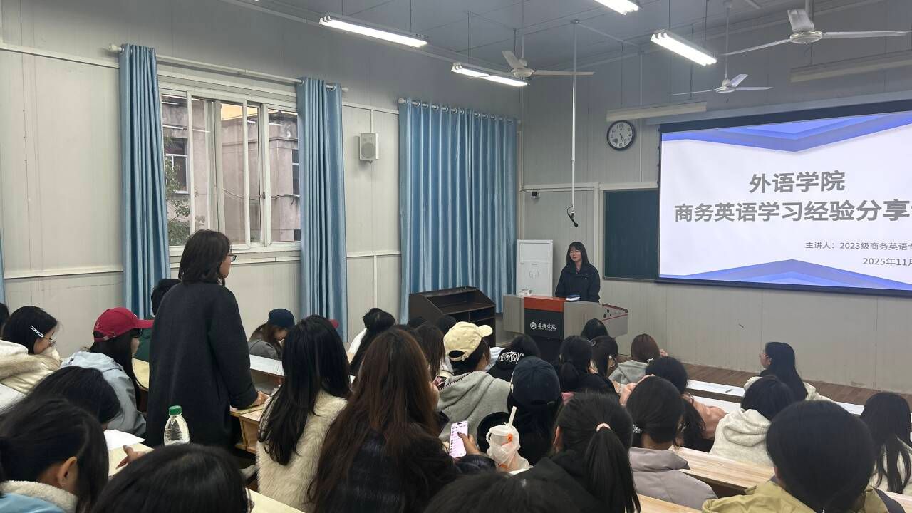 分享结束后,新生们围绕“专业与普通英语专业的考证差异”“语言学习与商务知识积累的平衡”等问题积极提问,四位代表结合自身经历逐一回应,给出具体可操作的建议。