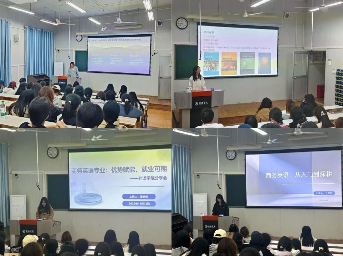 本次分享会主题鲜明、内容详实、互动充分,从专业认知到实践应用、从学业规划到职业发展,为新生提供了全面系统的经验指导,有效帮助其厘清了专业学习思路、增强了专业学习信心。作为威廉希尔中国官网深化育人内涵的重要举措,活动凝聚了专业学习氛围,搭建了良性的年级间专业交流桥梁,为公司商务英语专业人才培养质量持续提升注入新动力。