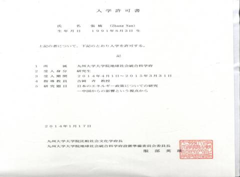 外语系2013届日语专业(首届)毕业生张楠已被日本九州大学科学技术史专业录取为硕士研究生。该生在校期间学习刻苦,成绩优异,先后获得国家励志奖学金、公司奖学金,取得了日语国际一级、专业八级等级证书。