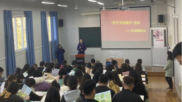 肖红香首先对开展本次活动的目的对同学们进行说明,在公司开展艾滋病防治知识宣传“百千万校园行”系列活动的重要意义,强调世界艾滋病日是为了提高公众对艾滋病的认识,共同对抗艾滋病在全球传播,呼吁全校师生要加强艾滋病防治知识学习,提高自我防护能力;同时做一个防艾宣传员,向身边的家人、朋友、同学积极宣传防艾知识,正确对待、科学预防艾滋病,关心平等对待艾滋病患者。