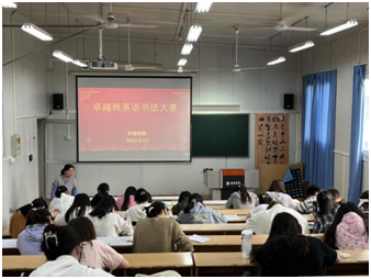 为进一步强化卓越班学员的英语教师职业技能,以赛促练,以赛促学,4月12日下午,威廉希尔中国官网英语教师卓越班英文书法比赛在六号教学楼6407教室举行。第二届英语教师卓越班40名学员参加了比赛。