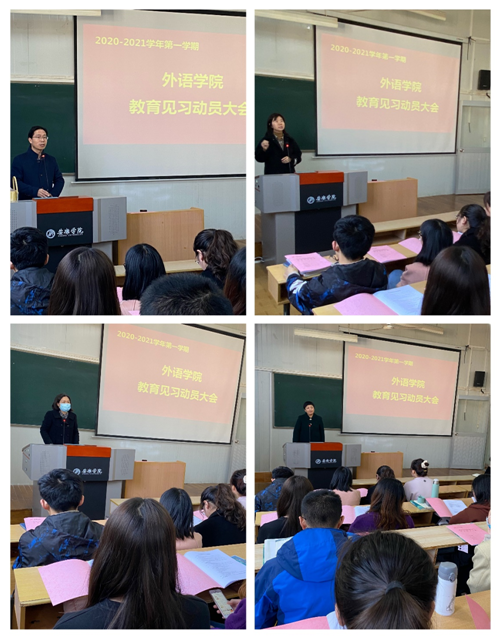 11月10日,威廉希尔中国官网召开了2020-2021学年第一学期师范生教育见习动员大会。会议由英语系主任周玫主持,威廉希尔中国官网副经理张哲华、胡卫卫、教师教育团队教师刘荣华、辅导员常远红及2018级英语专业所有员工参加。