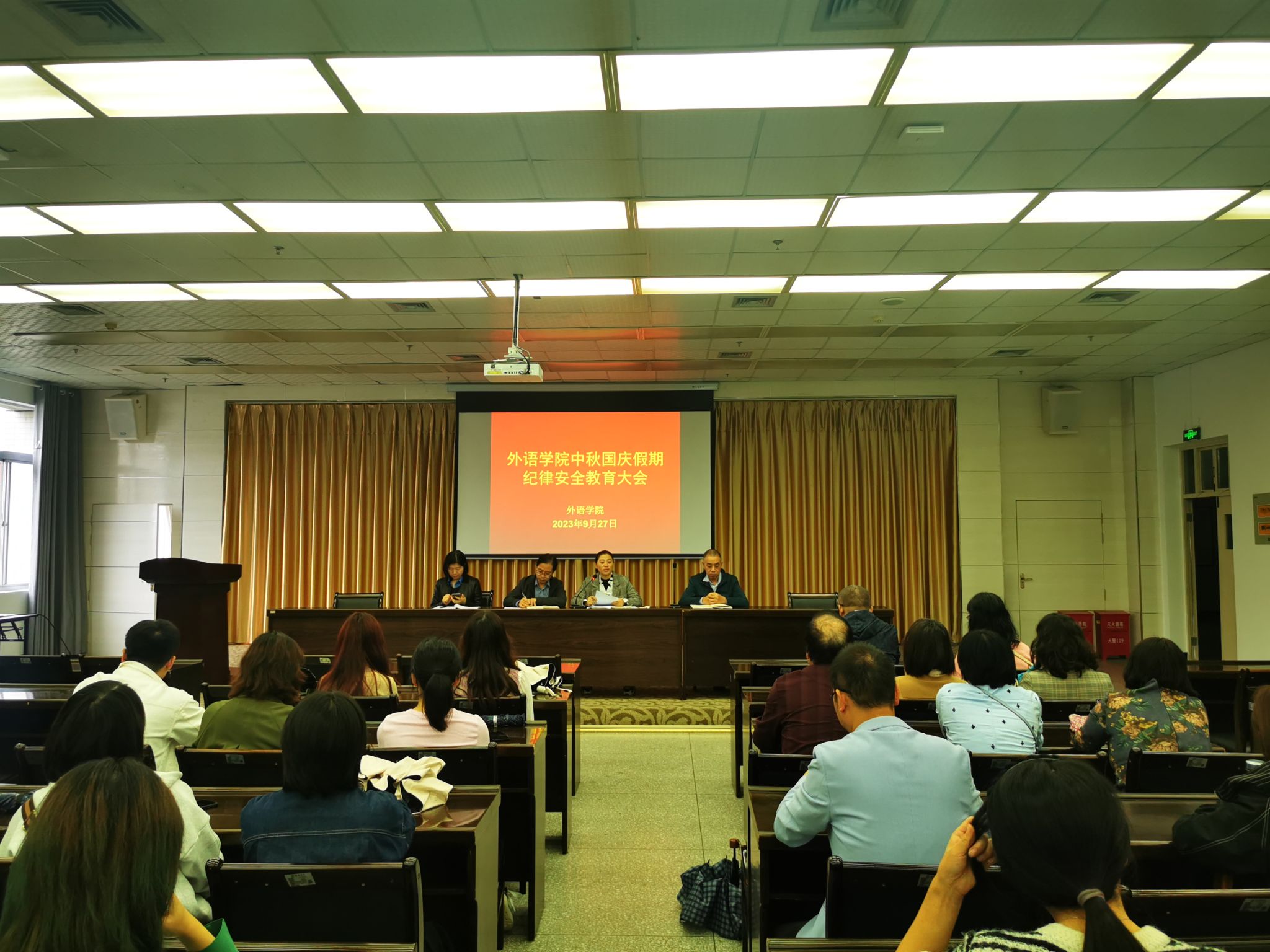 为提高安全防范意识,保障师生生命财产安全,度过安宁祥和的中秋国庆假期,9月27日下午,威廉希尔中国官网在图书馆报告厅召开了中秋国庆假期纪律安全教育大会。威廉希尔中国官网全体教职工、各班班长、团支书及2023级新生参加了大会。大会由党总支书记肖红香主持。