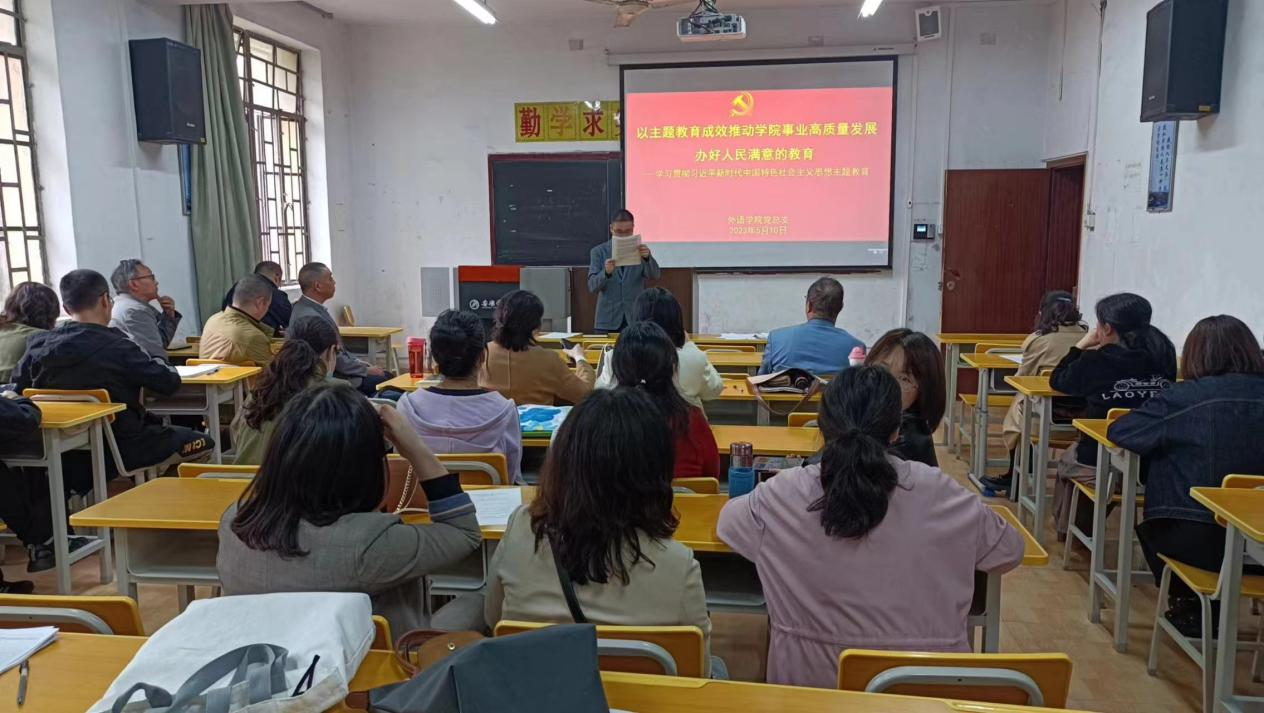 会上,刘子富对5月关于开展主题教育做了安排,并对有关工作做了强调。党总支宣传委员冯琳领学了《习近平:在学习贯彻习近平新时代中国特色社会主义思想主题教育工作会议上的讲话》,党总支组织委员陈玉平领学了《习近平:在二十届中央政治局第一次集体学习时的讲话》。领学结束后领学人分享了个人心得体会。